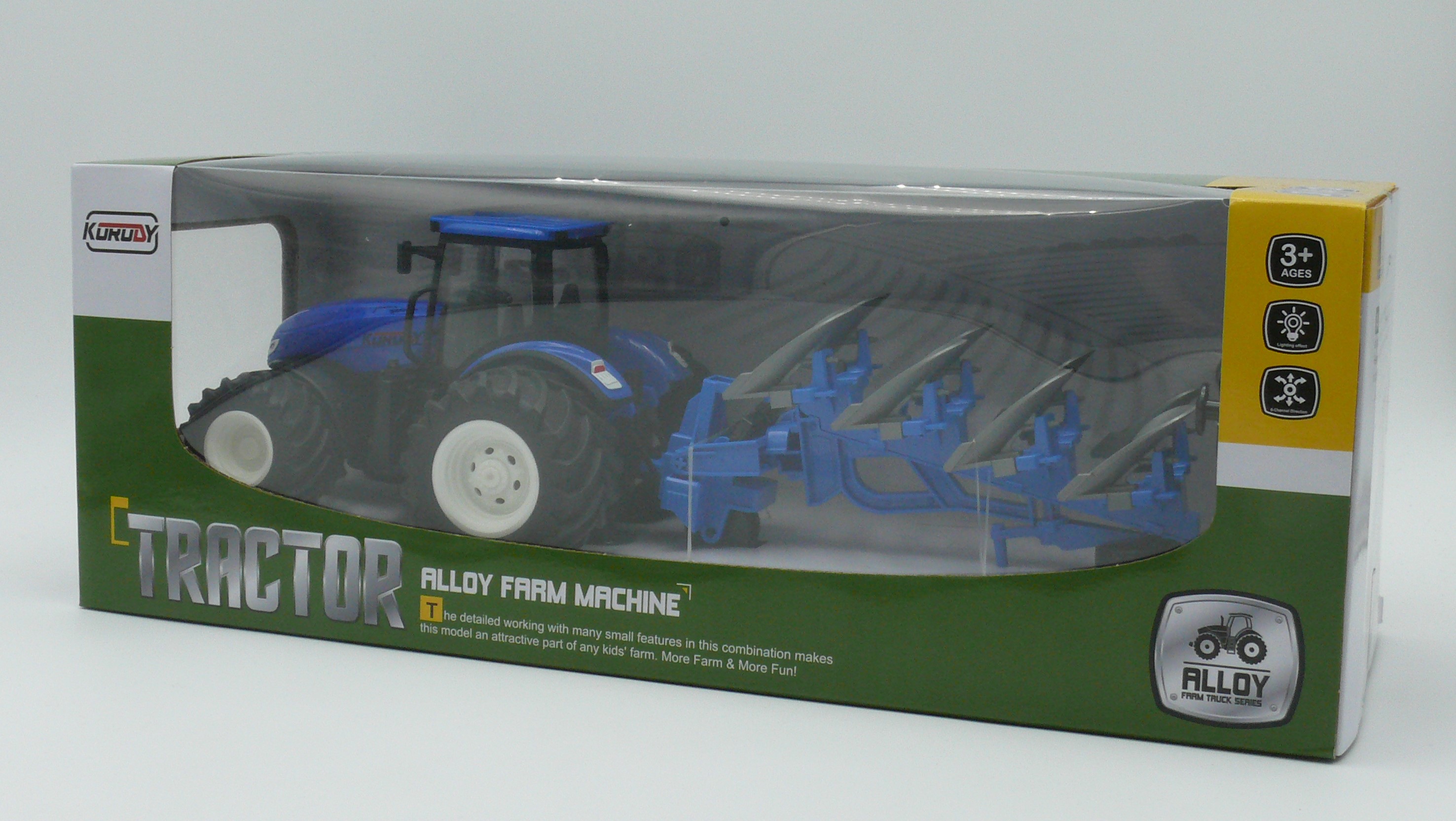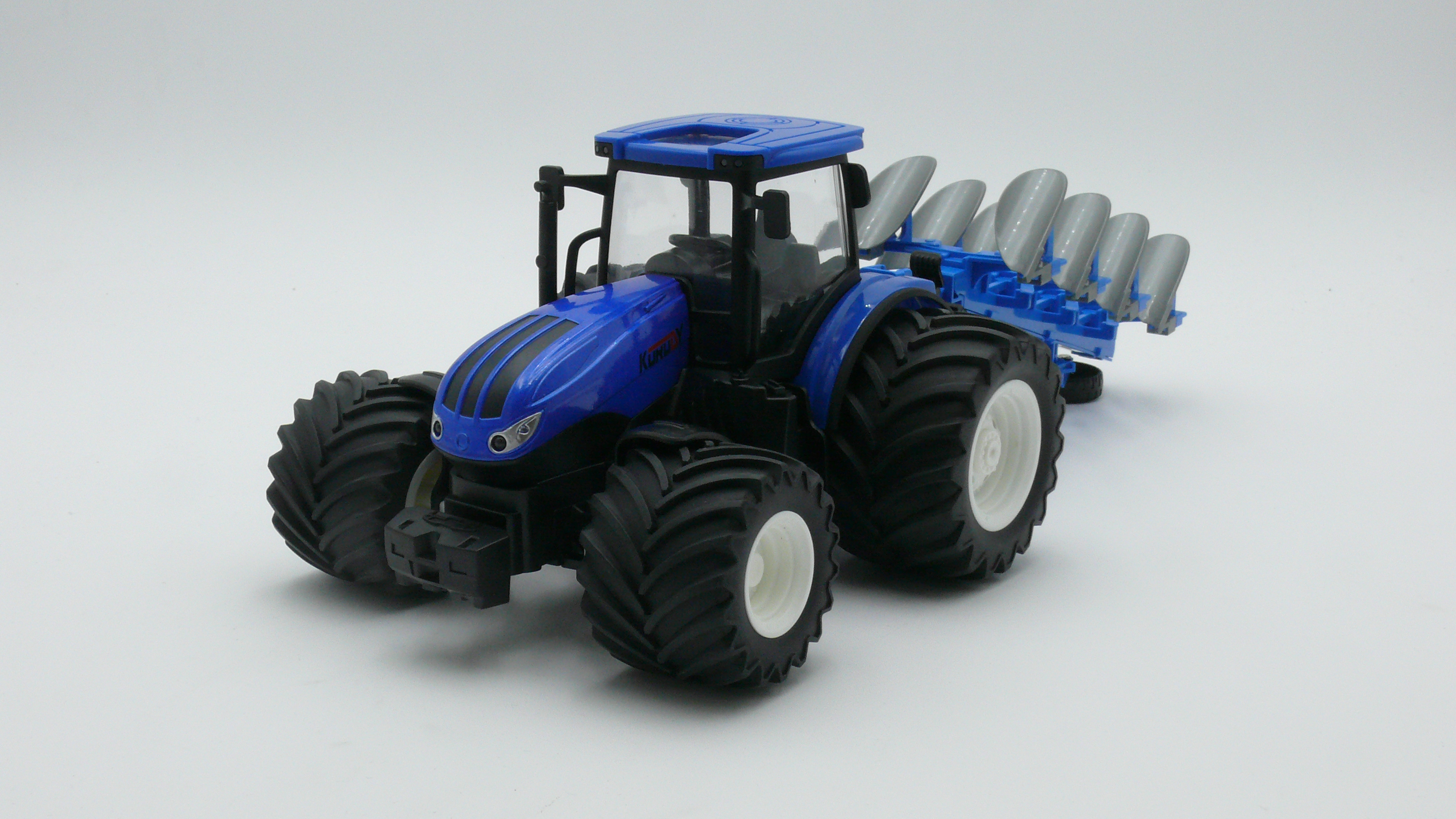 Ferngesteuerter Traktor mit Pflug, blau