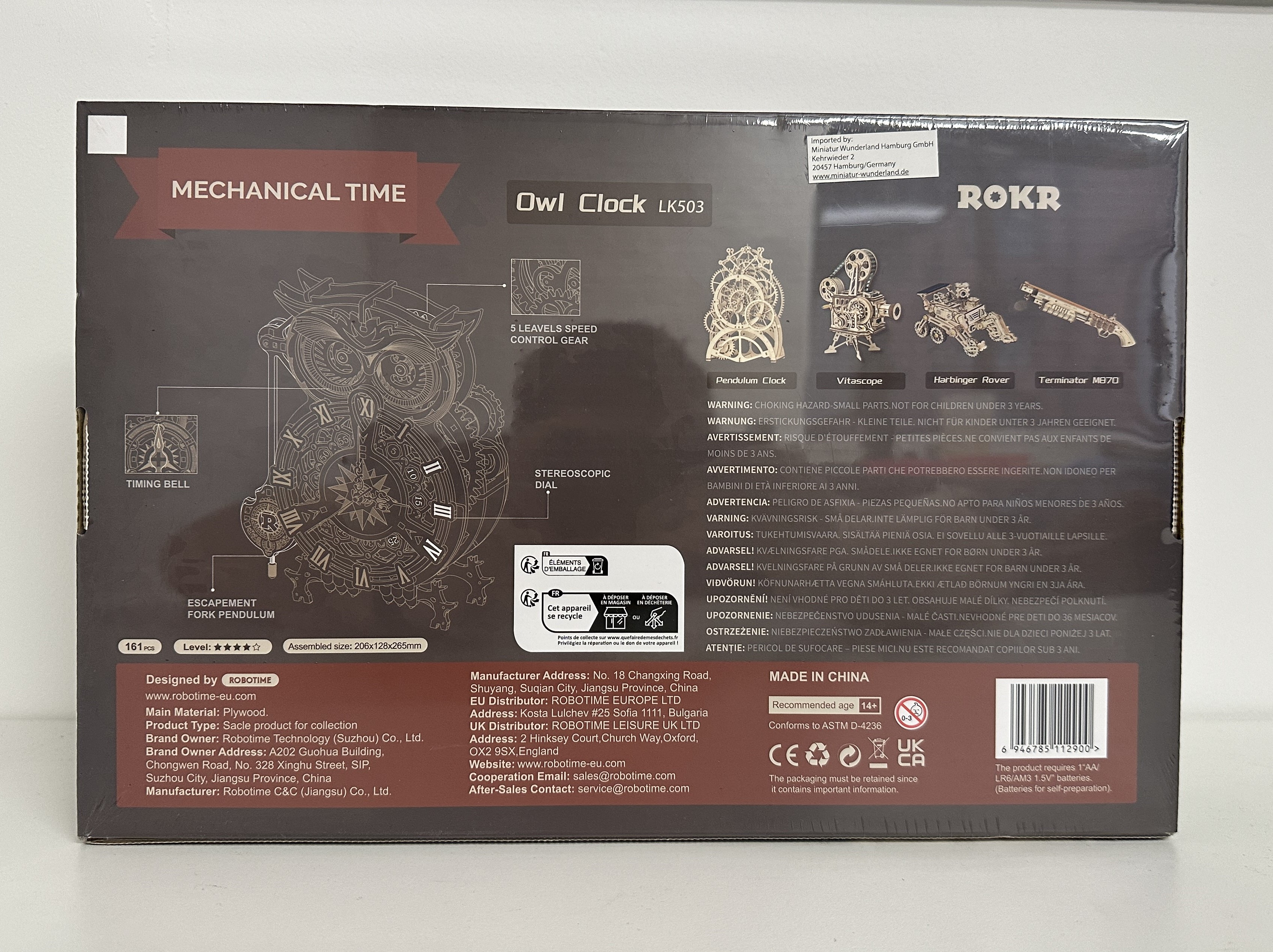 Holbausatz "Owl Clock" von Robotime