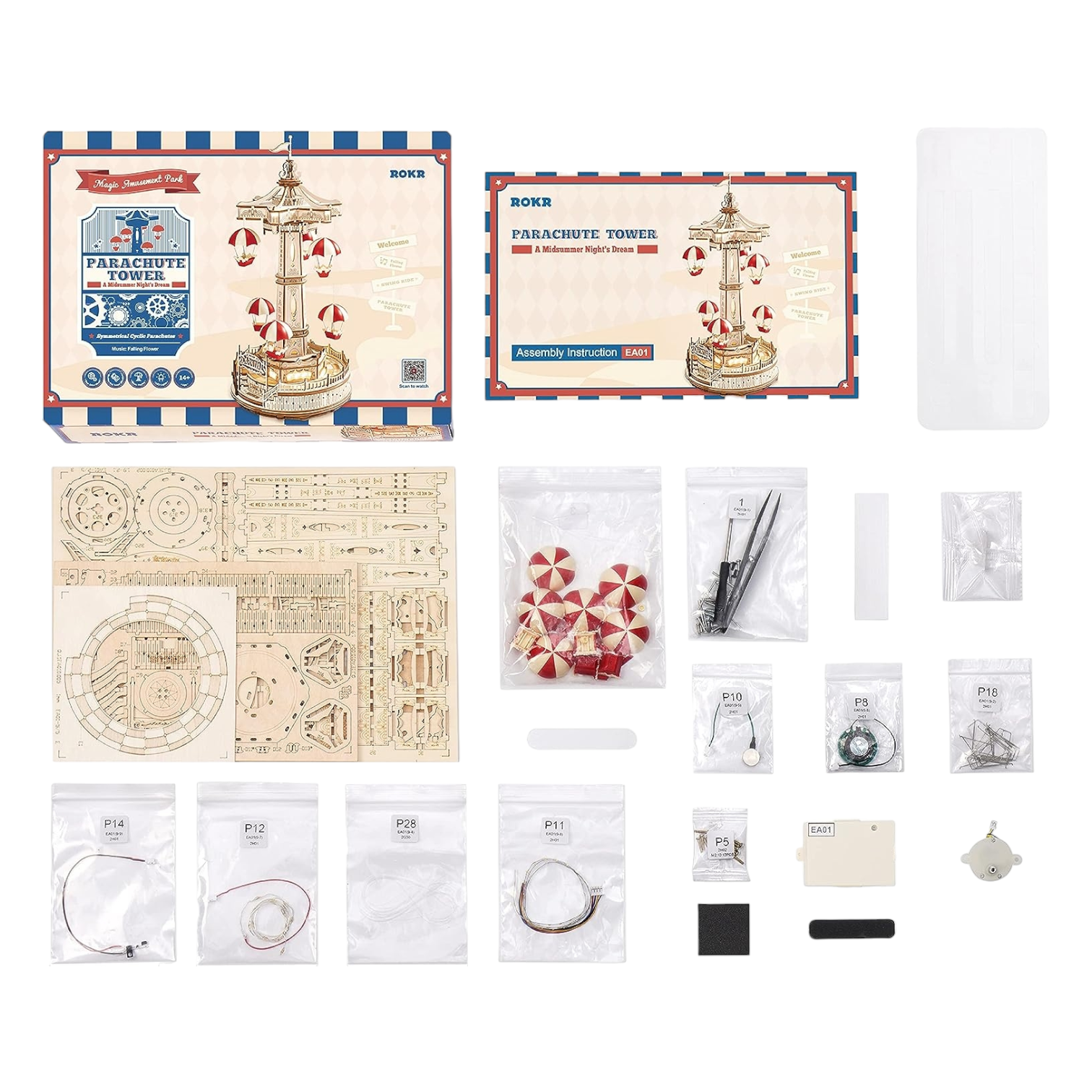 Das ROKR EA01 Modell besteht aus hochwertigem Holz und wird mit präzise geschnittenen Teilen geliefert, die einfach zusammengebaut werden können. Es enthält auch eine detaillierte Anleitung, die Schritt für Schritt durch den Montageprozess führt.