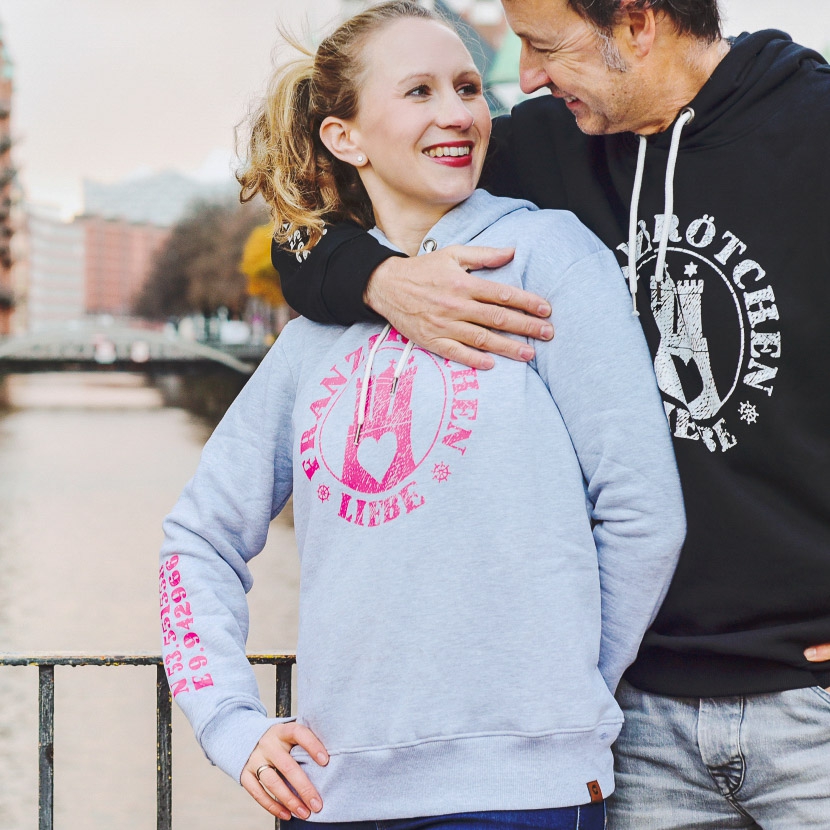 Weich, warm und kuschelig, dabei sportlich und typisch Hamburg – das ist unser Franzbrötchen Hoodie.