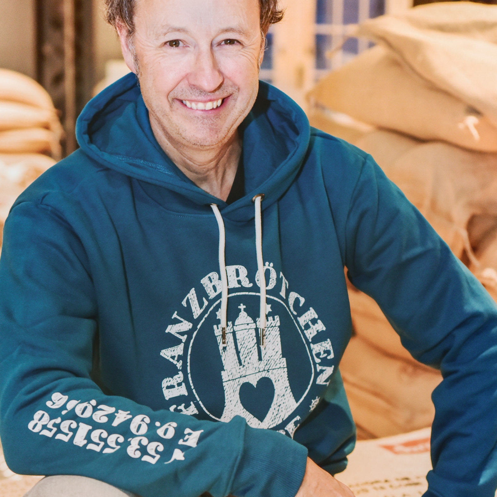 Weich, warm und kuschelig, dabei sportlich und typisch Hamburg – das ist unser Franzbrötchen Hoodie.
