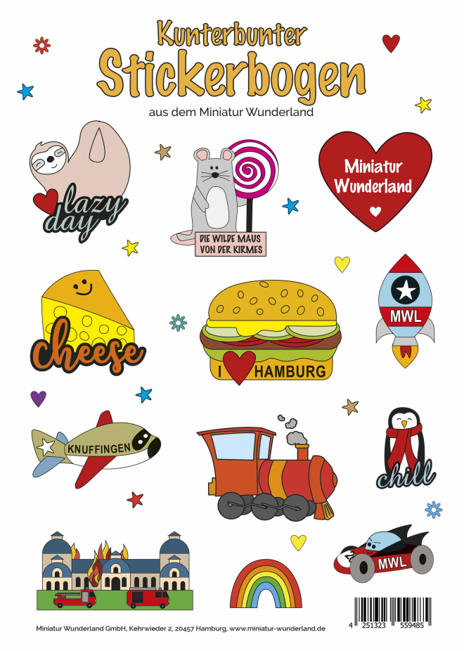 Der kunterbunte Stickerbogen aus dem Miniatur Wunderland!