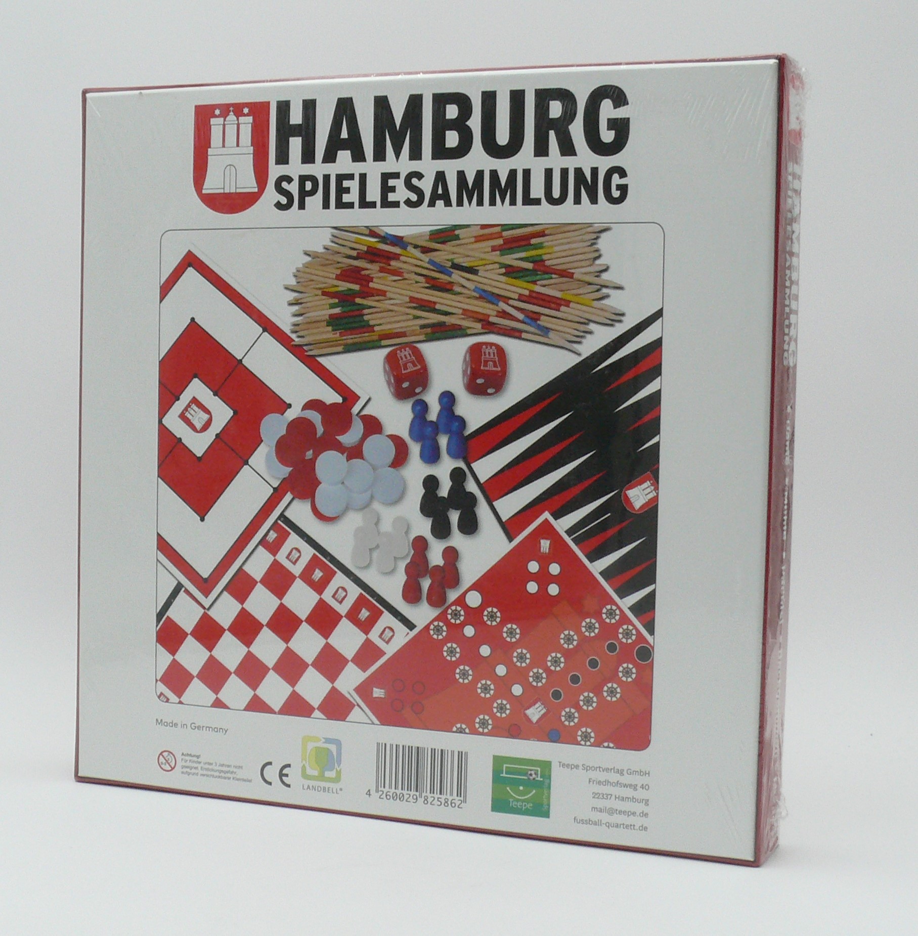 Diese Spielesammlung im Hamburg-Look beinhaltet 5 Spieleklassiker der Kategorie "Gesellschaftsspiele".
